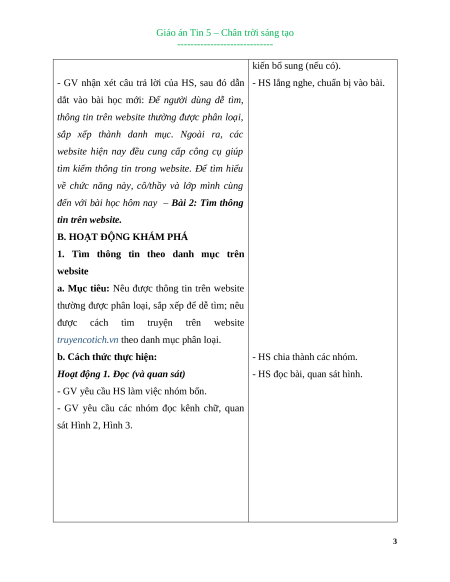 Giáo án Tin 5 – Chân trời sáng tạo ----------------------------- kiến bổ sung (nếu có).