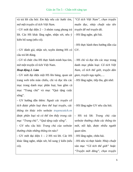 Giáo án Tin 5 – Chân trời sáng tạo -----------------------------