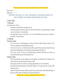 BÀI 2: THÔNG TIN TRONG MÔI TRƯỜNG SỐ (2 Tiết) I. MỤC TIÊU 1. Mục tiêu Sau bài học này, HS sẽ: