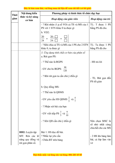 - Nhớ lại tính chất cơ bản của phân số. 2. Kĩ năng.