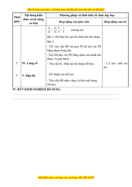 - Gọi HS đọc các PS bằng nhau mà mình tìm được và giải thích. 3’ IV. Củng cố