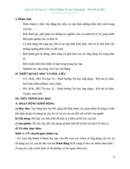 Giáo án Tin học 12 – Định hướng Tin học ứng dụng – Kết nối tri thức ----------------------------- 3. Phẩm chất