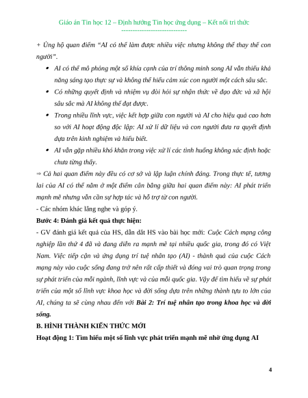- GV chia lớp thành 4 nhóm học tập, cho HS xem các video về ứng dụng của AI, sự