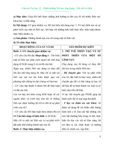 Giáo án Bài 2: Trí tuệ nhân tạo trong khoa học và đời sống Tin học 12 Kết nối tri thức