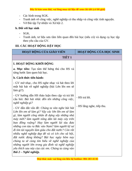 Giáo án Bài 2 Tự nhiên xã hội lớp 2 Cánh diều: Nghề nghiệp