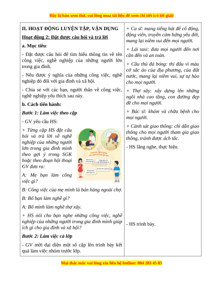 - Nói được tên nghề nghiệp, công việc của những người lớn trong gia đình.