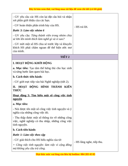 Thu thập được một số thông tin về những công việc, nghề có thu nhập, những công việc tình nguyện. 3. Phẩm chất