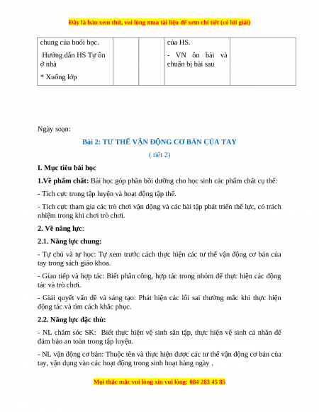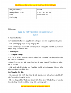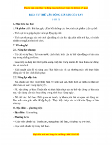 Bài 2: TƯ THẾ VẬN ĐỘNG CƠ BẢN CỦA TAY ( tiết 1)