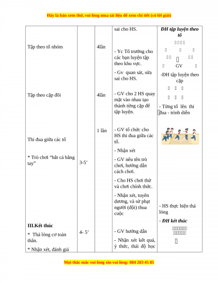 - Hình thức dạy học chính: Tập luyện đồng loạt( tập thể), tập theo nhóm, tập luyện theo cặp.