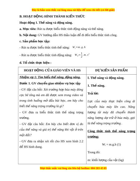 Đây là bản xem th , vu ử i lòng mua tài li u ệ đ xe ể m chi ti t (c ế ó l i ờ gi i ả ) B. HO T Ạ Đ N Ộ G HÌNH THÀNH KI N Ế TH C Ứ Hoạt đ ng 1. ộ Th năng và đ ế ng nă ộ ng.