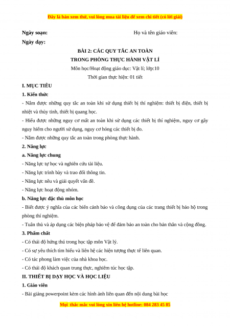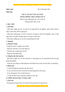 Giáo án Bài 2 Vật lí 10 Kết nối tri thức (2024): Các quy tắc an toàn trong phòng thực hành vật lí
