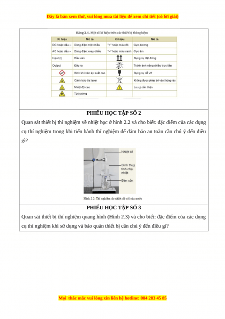 cụ thí nghiệm trong khi tiến hành thí nghiệm để đảm bảo an toàn cần chú ý đến điều