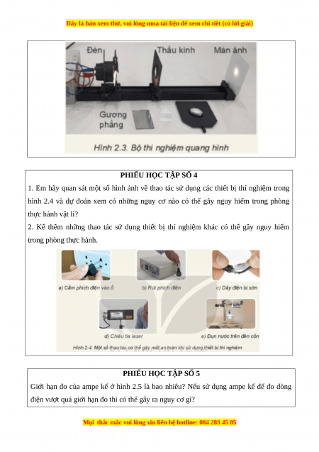 hình 2.4 và dự đoán xem có những nguy cơ nào có thể gây nguy hiểm trong phòng thực hành vật lí?