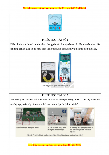 - Nắm được những quy tắc an toàn khi sử dụng thiết bị thí nghiệm: thiết bị điện, thiết bị