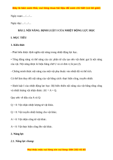 • Nêu được khái niệm nội năng, định luật I nhiệt động lực học