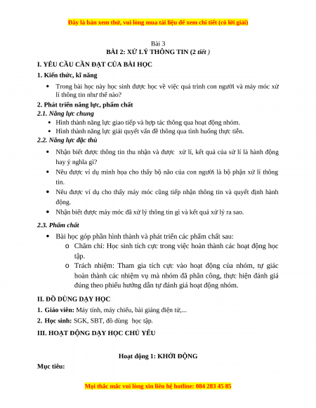 Giáo án Bài 2: Xử lý thông tin Tin học 3 Kết nối tri thức