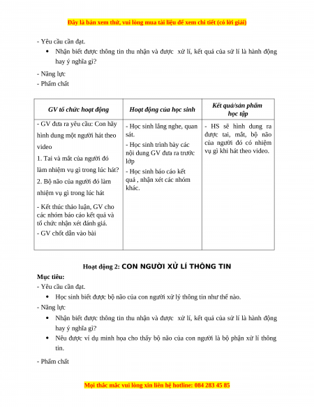 Hoạt động 2: CON NGƯỜI XỬ LÍ THÔNG TIN Mục tiêu: - Yêu cầu cần đạt.