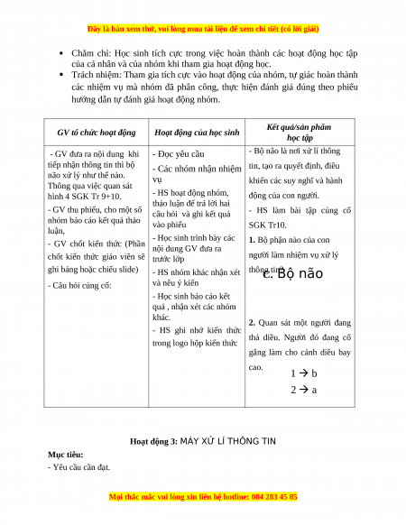 Hoạt động 3: MÁY XỬ LÍ THÔNG TIN Mục tiêu: - Yêu cầu cần đạt.