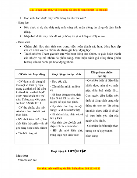 Nhận biết được máy móc đã xử lý thông tin gì và kết quả xử lý ra sao. - Phẩm chất