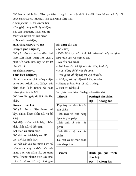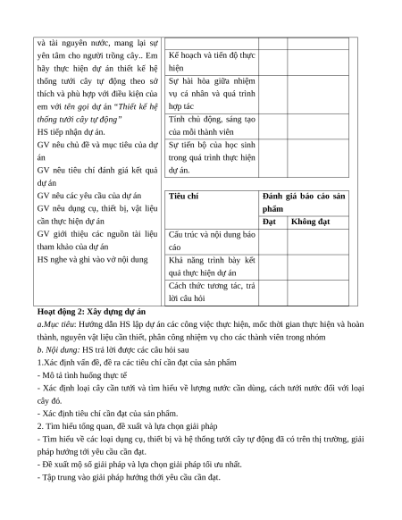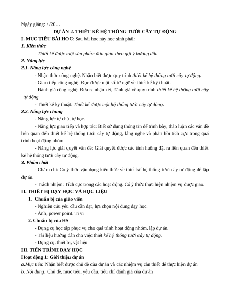 - Chăm chỉ: Có ý thức vận dụng kiến thức về thiết kế hệ thống tưới cây tự động để lập dự án.