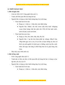 - Nguyên liệu và dụng cụ thực hành tương ứng ở các nội dung: