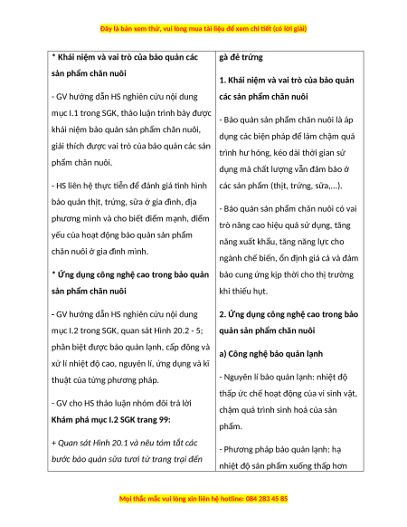 Giáo án Bài 20 Công nghệ chăn nuôi 11 Kết nối tri thức: Bảo quản và chế biến sản phẩm chăn nuôi