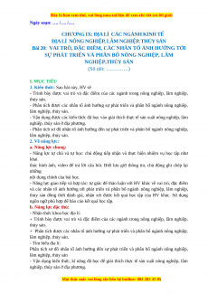 - Trình bày được vai trò và đặc điểm của các ngành trong nông nghiệp, lâm nghiệp, thủy sản.