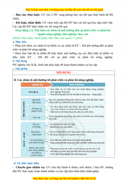 - Phân tích sơ đồ nhân tố ảnh hưởng đến sự phát triển và phân bố ngành nông nghiệp, lâm nghiệp, thủy sản. 2. Về năng lực: a. Năng lực chung: