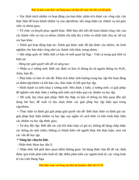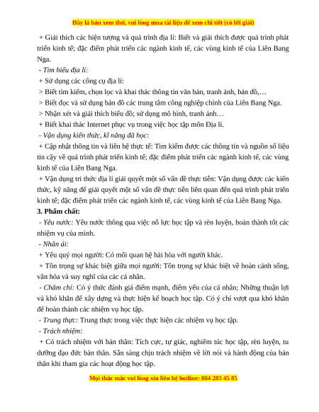 kinh tế; đặc điểm phát triển các ngành kinh tế, các vùng kinh tế của Liên Bang Nga. 3. Phẩm chất: