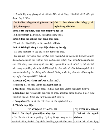 - GV dẫn dắt HS vào bài học: Sự phát triển ngành dịch vụ góp phần thúc đẩy chuyển