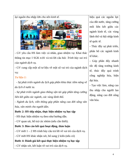 - GV nhận xét, kết luận về vai trò của dịch vụ. 4