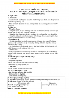 NHIÊN CHÂU ĐẠI DƯƠNG I. MỤC TIÊU 1. Kiến thức: