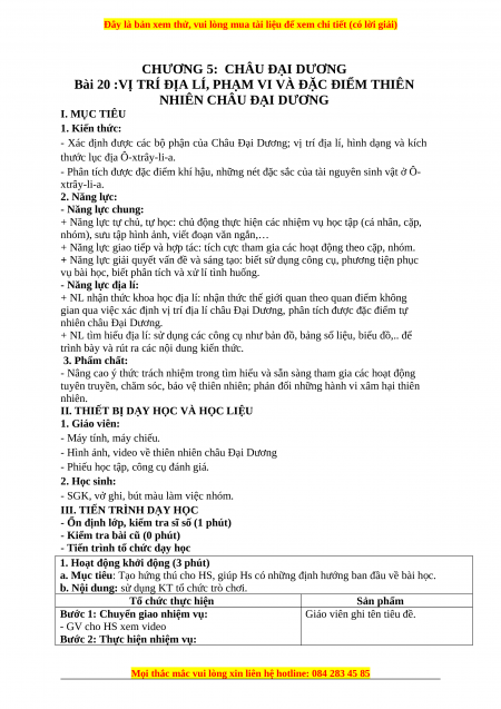 gian qua việc xác định vị trí địa lí châu Đại Dương, phân tích được đặc điểm tự nhiên châu Đại Dương.