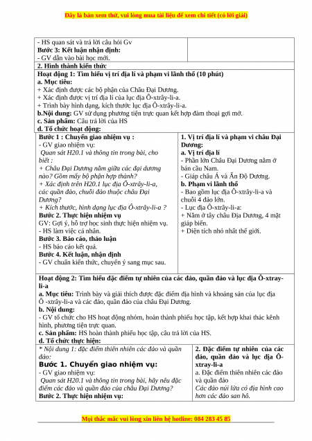 Ô -xtrây-li-a và các đảo, quần đảo của châu Đại Dương. b. Nội dung: