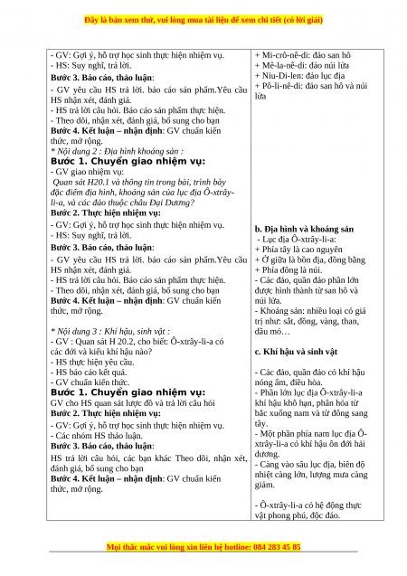 Bước 1. Chuyển giao nhiệm vụ: xtray-li-a - GV giao nhiệm vụ: