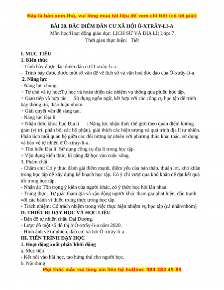 - Trình bày được được một số vấn đề về lịch sử và văn hoá độc đáo của Ô-xtrây-li-a. 2. Năng lực - Năng lực chung: