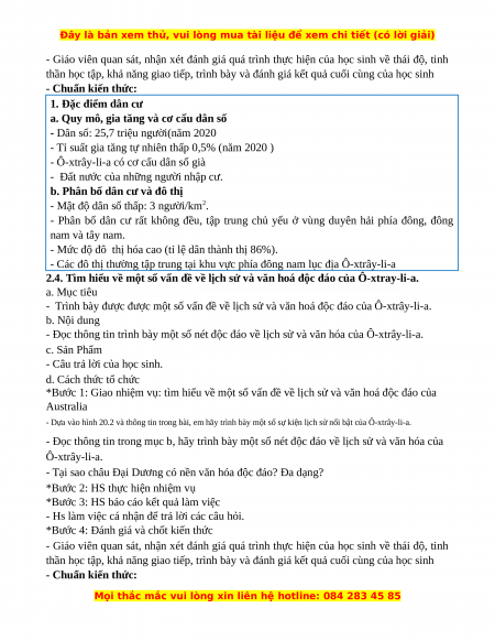 - Trình bày được đặc điểm dân cư Ô-xtrây-li-a. b. Nội dung - Đặc điểm dân cư.