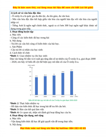 - Đọc thông tin trình bày một số nét độc đáo về lịch sử và văn hóa của Ô-xtrây-li-a. c. Sản Phẩm