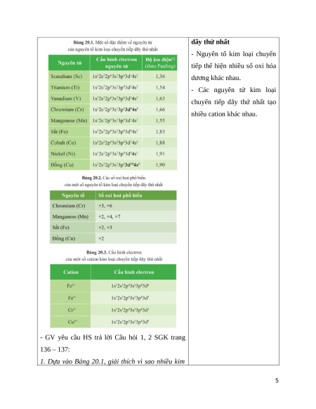 chuyển tiếp dãy thứ nhất (từ Sc đến Cu); nêu được xu hướng có nhiều số oxi hóa của
