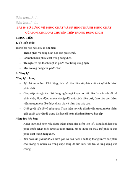 BÀI 20. SƠ LƯỢC VỀ PHỨC CHẤT VÀ SỰ HÌNH THÀNH PHỨC CHẤT
