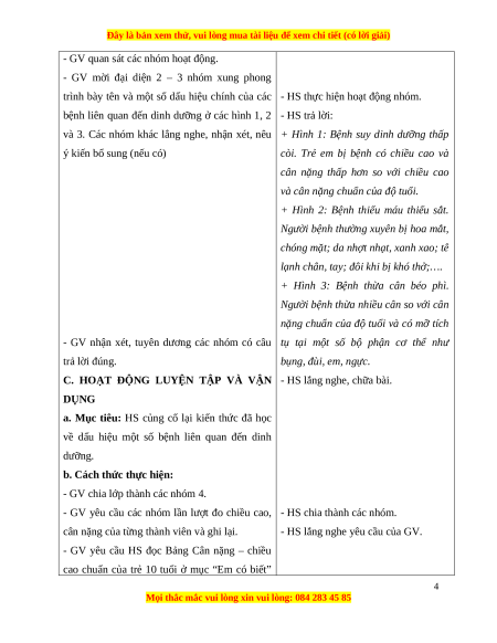 và 3. Các nhóm khác lắng nghe, nhận xét, nêu + Hình 1: Bệnh suy dinh dưỡng thấp