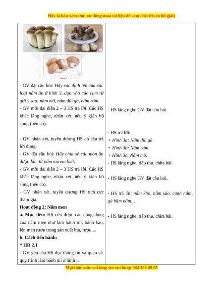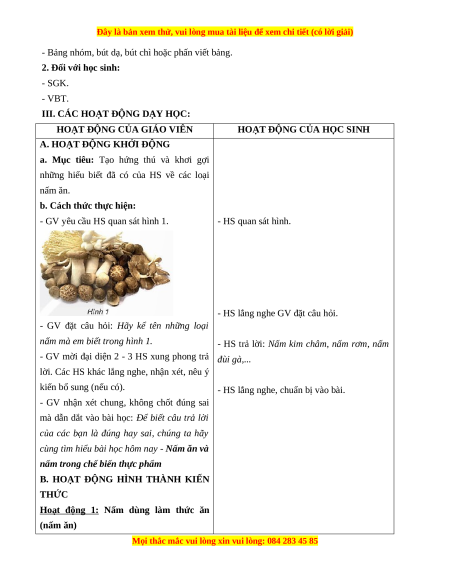 Giáo án Bài 20 Khoa học lớp 4 (Kết nối tri thức): Nấm ăn và nấm trong chế biến thực phẩm
