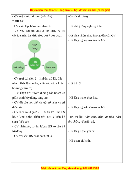 - HS trả lời: Các loại nấm có hình dạng,