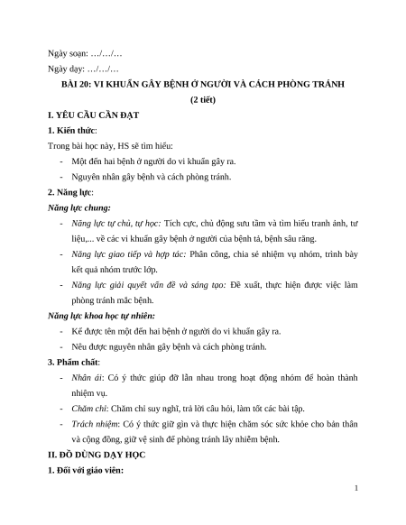 - Nguyên nhân gây bệnh và cách phòng tránh. 2. Năng lực: