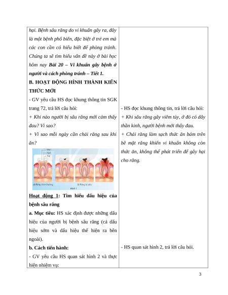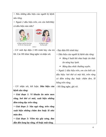 Hoạt động 1: Tìm hiểu dấu hiệu của bệnh sâu răng