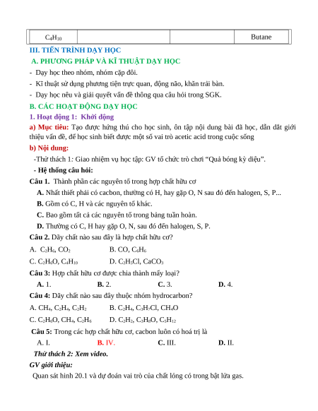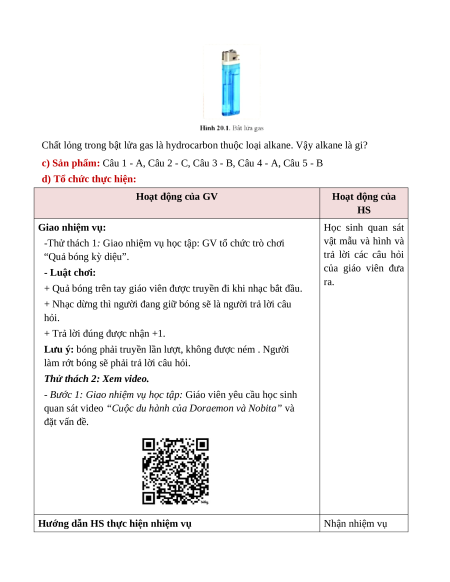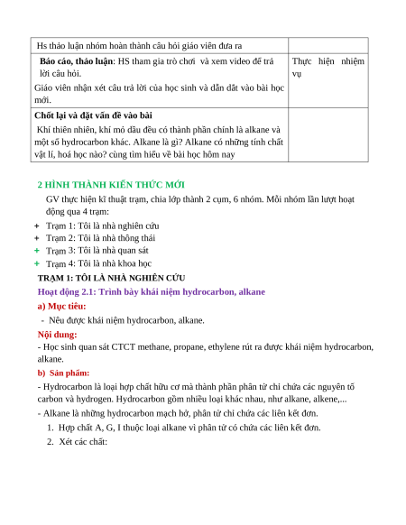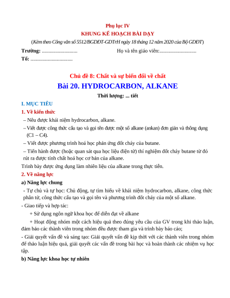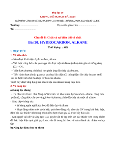 Giáo án Bài 20 Khoa học tự nhiên 9 Cánh Diều (2024): Hydrocarbon, alkane