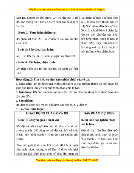 Sau đó, giới thiệu cho HS Hình 20.2 hoặc một sản của tế bào
