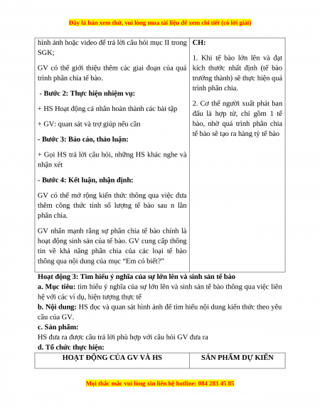- Nêu được ý nghĩa của sự lớn lên và sinh sản của tế bào đối với cơ thể