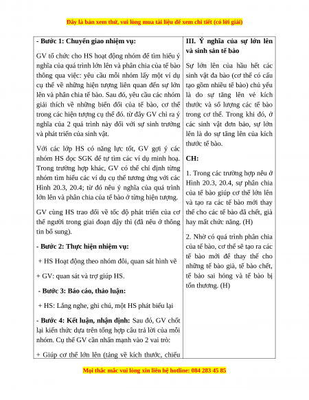 - Vận dụng được kiến thức về sự lớn lên và sinh sản của tế bào để chăm sóc cơ thể 2. Năng lực