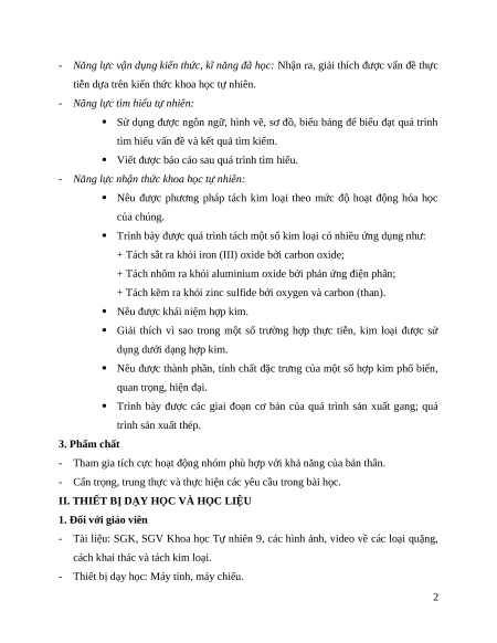 - Trình bày được các giai đoạn cơ bản của quá trình sản xuất gang; quá trình sản xuất thép. 2. Năng lực